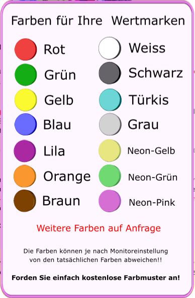 Gerne schicken wir Ihnen kostenlos Mustermarken zur Ansicht.