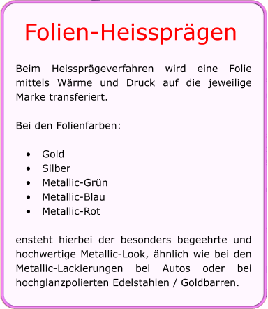 Prägung 1-seitig, zzgl. 3.99 € Fracht und 19% MWST und ggfs. 55.- € Stempelkosten, sofern ihr Logostempel noch nicht vorhanden ist.