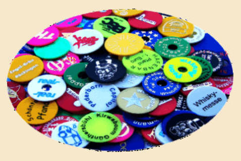 Die Einkaufswagen Chips aus Kunststoff können auf einer oder auf beiden Seiten mit ihren individuellen Motiven / Textenheißgeprägtwerden. Die Einkkaufswagenchips sind in diesen Farben erhältlich und können in diesen Farbenheißgeprägt werden.Logos sollten als PDF oder als TIF/PNG-Format vorliegen. Die Vorlage senden Sie uns bitte per E-Mail oder mit der Datei-Upload-Möglichkeit im Anfrageformular. Bei Fragen rufen sie uns einfach an. Wir helfen Ihnen gerne!Viele Standardlogos, bei denen keine Stempelkosten anfallen finden Siehier.Lieferzeit bei z.B. 1000 Einkaufswagenchips ca. 10 Werktage. Die Frachtkosten betragen 3,99 €. Bezahlung per Rechnung.Um ihr Logo prägen zu können, muss ein Prägestempel angefertigt werden, sofern nicht bereits vorhanden. Dieser Logo-Stempel kostet einmalig 55 €. Der Logostempel kann bei Folgebestellungen immer wieder verwendet werden! Für Logos wie: Pfand, Wertmarke, 1 Bier, 1 Limo, 1 Schnaps, 1 Essen, 1 Getränk fallen keineStempelkosten an, da diese Stempel bereits vorhanden sind. Alle Preise sind Nettopreise, zzgl. MWST.